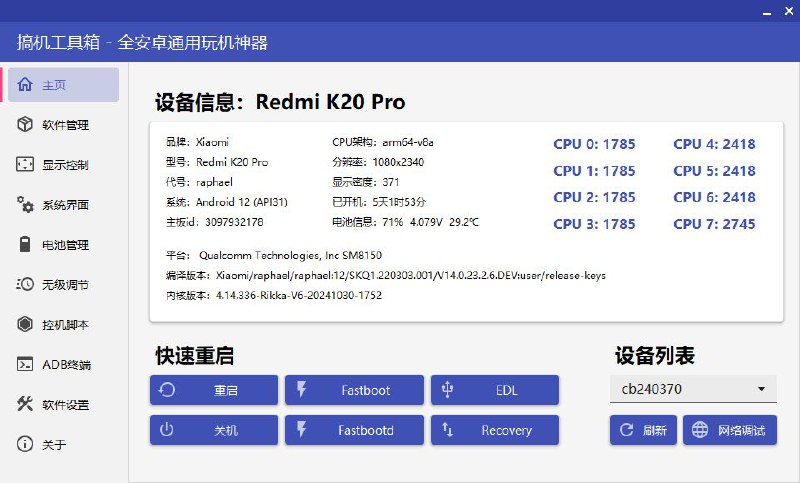 一款利用ADB (安卓调试桥)来控制手机的玩机工具。