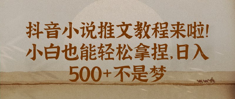 抖音小说推文新手教程,专为小白量身定制,让你轻松掌握抖音小说推广技巧,从零基础到高效变现。课程内容包括如何利用抖音平台的流量优势,实现小说内容的广泛传播。无论是日常推文还是热点话题,帮助你快速上手,逐步实现从日入几百到日入几张的收入增长,让你的抖音账号轻松赚钱!