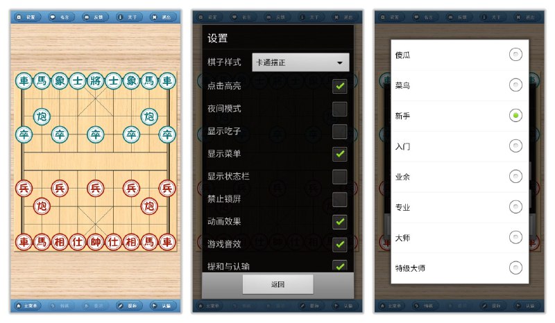 象棋巫师是一款专为象棋爱好者设计的学习和练习软件。它界面干净,体积小巧,提供多种象棋模式、难度选择和让子设置,如我先走、电脑先走或双人对弈等模式;菜鸟到大师的不同难度等级;以及不让子、让单马等多种让子选项。内置上千盘杀局习题,帮助用户提高棋艺。此外,它还支持木质、卡通摆正、卡通旋转等多种棋子样式,以及点击高亮、动画效果、悔棋、夜间模式等功能,确保使用流畅,体验丰富。