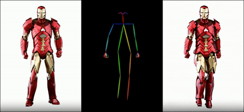 6. 自动生成骨骼动画:大家知道,由图片生成跳舞视频,很重要的一个环节是生成骨骼动画。这个项目已经会自动帮大家从参考视频中提取骨骼动画(如下图),简直不要太爽!
