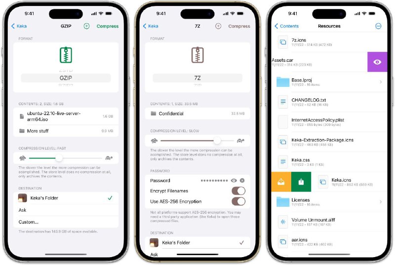 Keka一款高效压缩/解压工具,支持包括 7Z、ZIP、TAR、GZIP、ISO、RAR 等在内的多种压缩与解压格式,几乎涵盖所有主流压缩文件类型,满足用户日常文件处理需求。它具备拖拽压缩、密码加密、分卷压缩等实用功能,并可设置为默认解压工具,界面简洁、操作便捷,高效稳定,提升解压效率。
