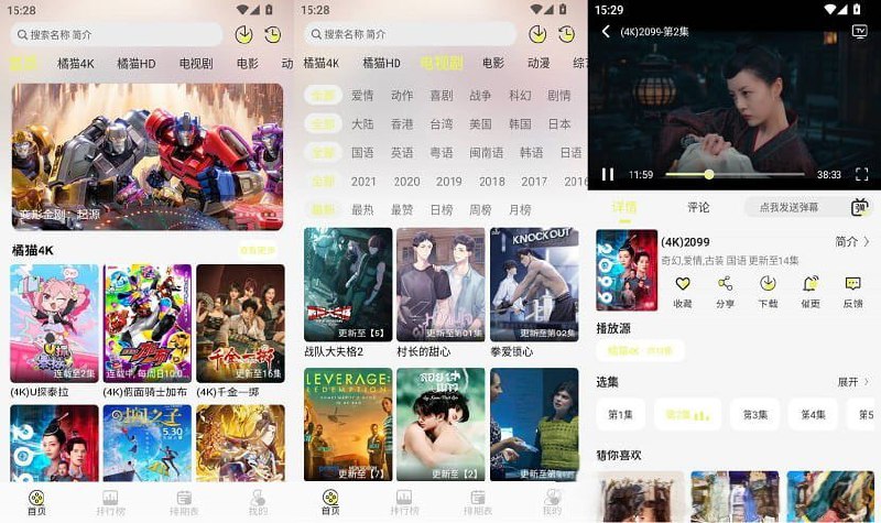 橘猫4K 是一款非常实用的手机影视免费播放神器,专为热爱影视的用户设计。它汇集了海量的热门影视作品资源,包括电影和电视剧,用户可以通过简单的一键搜索,快速找到并免费播放自己喜欢的内容。
