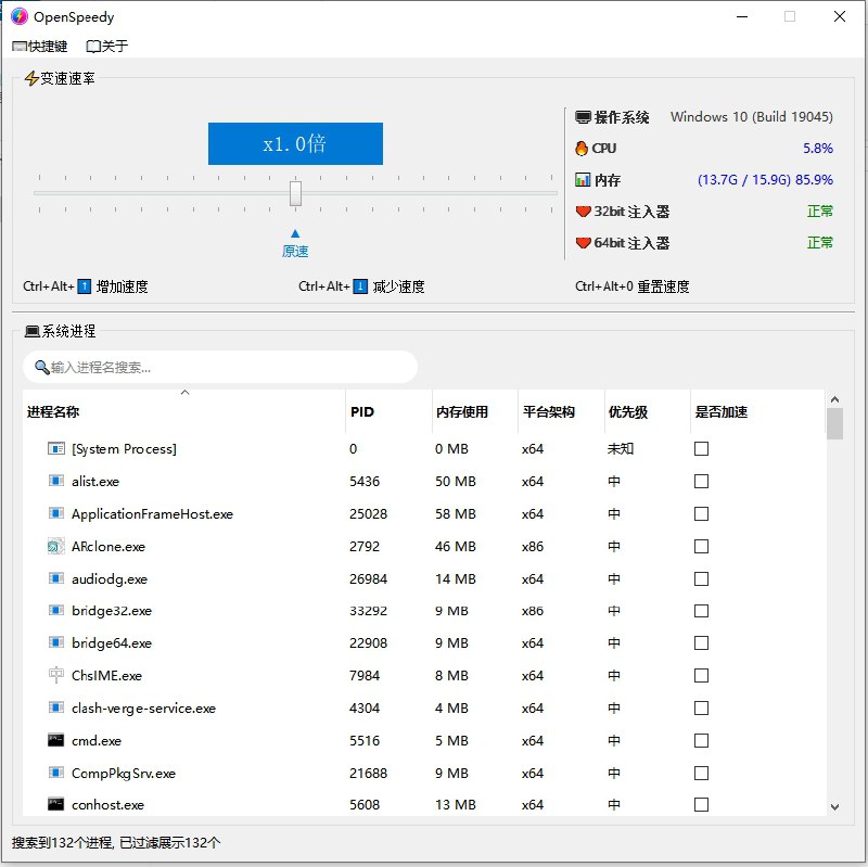 OpenSpeedy 是一款开源免费的游戏变速工具,让你的游戏突破帧率限制,提供更流畅丝滑的游戏加速体验。软件可可自定义变速倍率,对多种游戏引擎兼容性良好,低系统资源占用,同时可以加速x86和x64平台进程。软件无内核侵入性,Ring3层Hook,不破坏系统内核……