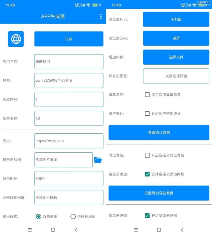 可以将任意网址转换成可安装的APP应用,无论是新闻、博客、论坛、游戏,还是在线购物网站或者视频观影平台,只要你有个希望转换的网址,这款应用都能为你实现,无需联网生成,并且支持多个网址集合在一起生成网址导航页面,应用永久免费使用