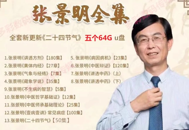 1张景明教授《黄帝内经》明师百讲(完结)02张景明中医基础第二期师承班03张景明教授《中医辨证》张景明(完结)120课视频含全部课件04张景明教授~《零基础学中医训练营》(完结)82课视频含全部课件05张景明~《一病一讲》100讲视频加课件完整版12.9G06张景明~中医基础2017年第五期培训视频25集张景明中医基础视频全集07张景明~《讲透中药》未完待续