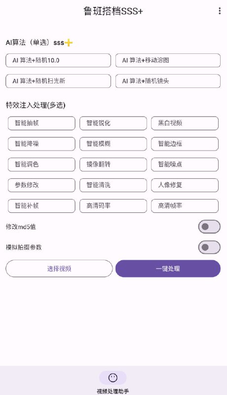 鲁班搭档SSS+app是一款非常好用的视频搬运神器,该软件为用户提供了智能剪辑、内容优化等功能于一体,帮助用户一键处理视频。同时软件还可以轻松将视频搬运下载后重新上传,还可以加多种特效,智能修改参数和高清操作,从而更好的满足用户的个性化需求。