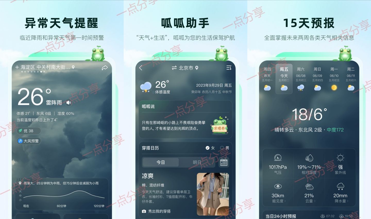呱呱天气是一款天气预报软件,它预报准确,覆盖全球,融合了国内外天气学的权威专家,为用户提供精准及时的预报和建议服务。它支持桌面插件,让你不用打开软件,在手机桌面就能看到天气预报,而且桌面小组件还可以自定义,用户可以自定背景和透明度,让你的组件更有个性。