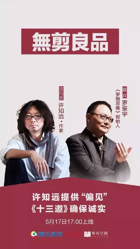 节目寻找13位具有模板作用的个人,向他们发出邀请。请求观察他们的行为,请求他们分享个人的经验和心得。提供正在发生的样本,探求中国发展的切片。这个节目,是许知远对时代做的思考。