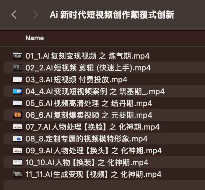 Ai 新时代短视频创作颠覆式创新,夸克网盘课程。这套《AI新时代短视频创作颠覆式创新》课程专为渴望在短视频领域突破的创作者打造。课程通过十大实战模块系统教学:从基础视频复刻与快速剪辑入门,逐步进阶至付费投放策略、高清处理技术,最终掌握爆款视频复刻、人物换脸换装、虚拟模特定制等核心技能。每个阶段对应修仙境界命名,生动呈现技术进阶路径。
