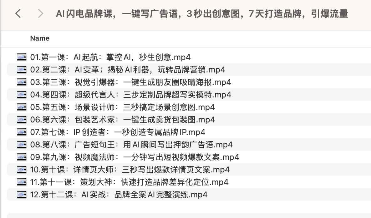 AI闪电品牌课,一键写广告语,3秒出创意图,7天打造品牌,引爆流量,夸克网盘课程。这套AI品牌速成课程通过12节实战教学,系统展示人工智能在品牌建设中的创新应用。课程覆盖品牌全流程建设,包含广告语智能生成、超写实模特定制、产品包装图自动设计等核心技能。学员可掌握朋友圈海报制作、短视频爆款文案撰写、产品详情页优化等实用技巧,实现3秒生成场景创意图、1分钟产出短视频脚本的高效作业。