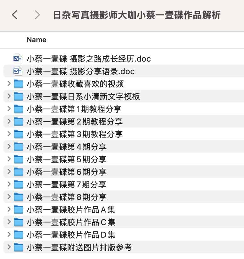 日杂写真摄影师大咖小蔡一壹碟作品解析,夸克网盘课程。